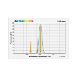 The OIII-CCD Filter is suitable for imaging of OIII nebulas from observation sites with light pollution and from dark sites as well. The contrast between an object glowing at 501nm and the background is increased enormous!