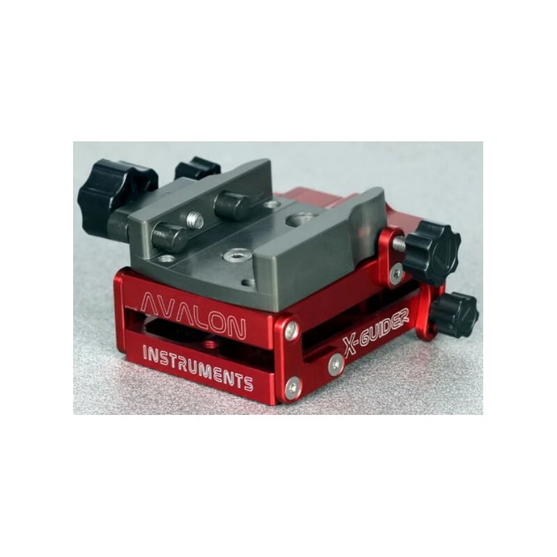 The X-Guider features a very compact body, an innovative design and a beautiful look. All metal aluminum parts are CNC machined. All screw knobs, designed by Avalon Instruments, have a special ergonomic design and are made with a special polymer. It features also a very hard anti-scratch anodized surface finish with CNC engraved characters.