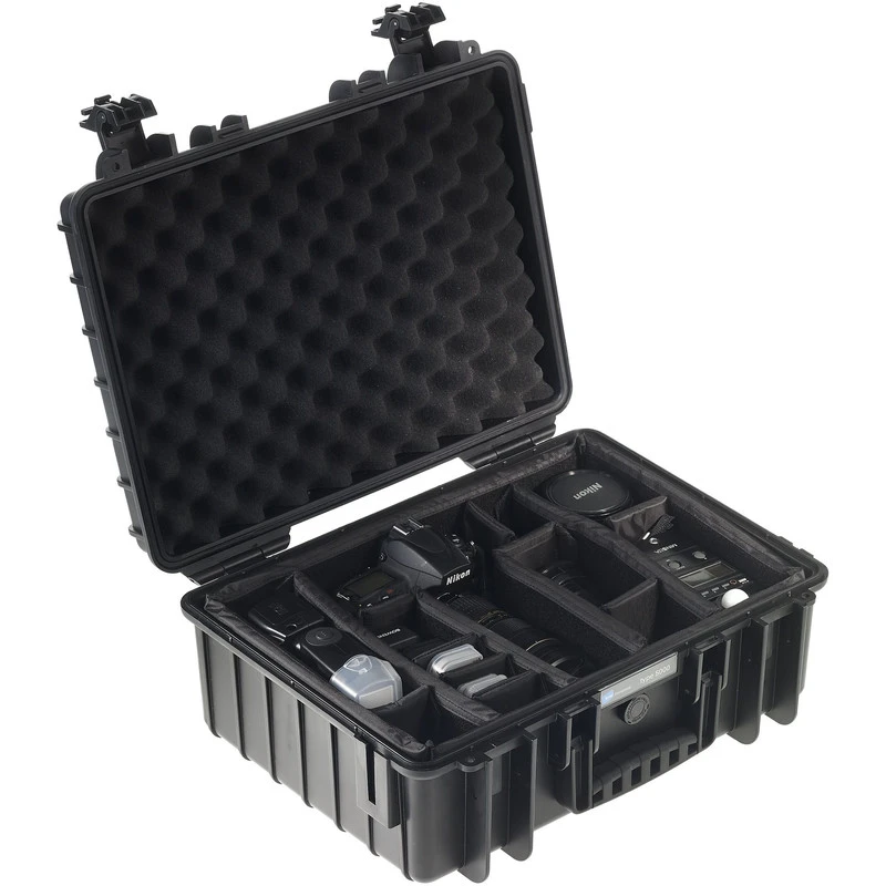 We supply these B&W case with a fully configurable padded partition (RPD) insert made of washable, heavy duty nylon fabric with hook-and-loop attachements, robust egg-crate foam in the lid.