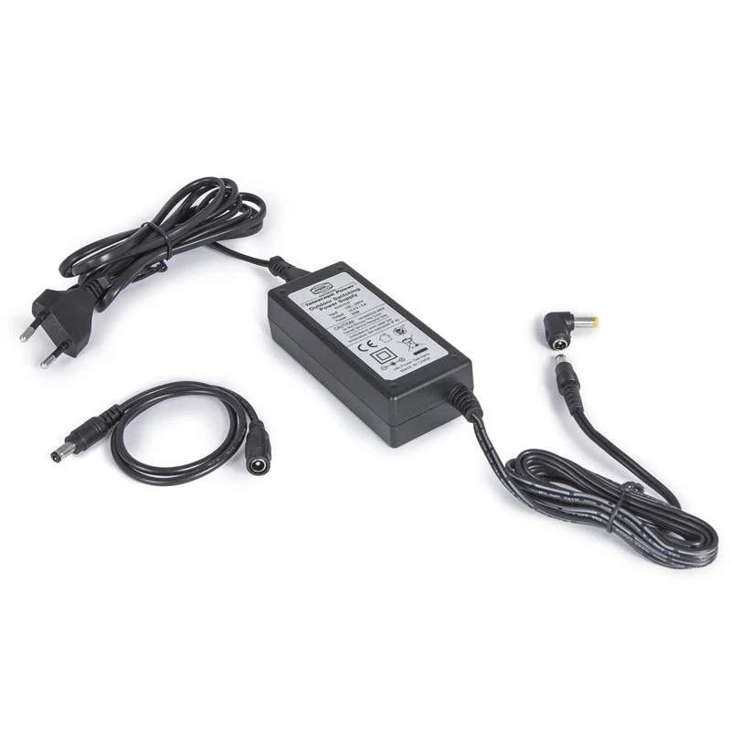 The cable which connects the mains adaptor to the telescope and the socket are around 4m long, including the mains adaptor.. They are longer than usual so that the cable does not create a trip hazard or hand around in mid-air. Even when being used with larger telescopes, the cable can be placed on the floor or on the tripod or pier column shelf .The casing is sealed against moisture but is not watertight. The plug should never be exposed to water.