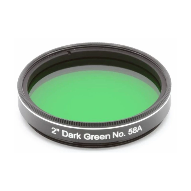 Green filters dramatically increase contrast between red and blue regions of cloud structures on the gas planets of Jupiter and Saturn. When used to view the Earth’s moon, it shows ray craters more clearly.