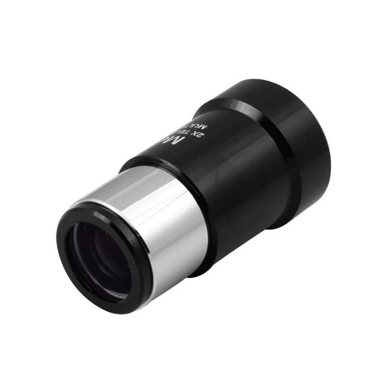 Doubles the magnification of your 1.25″ eyepiece while offering excellent image quality. Features a 26mm lens aperture, 1.25″ barrel, multi-coated optics, and doubles the power of any 1.25″ eyepiece without adding a very long extension between the telescope and the eyepiece. Insert this into the telescope’s eyepiece holder first, and then insert your eyepiece into the Barlow.