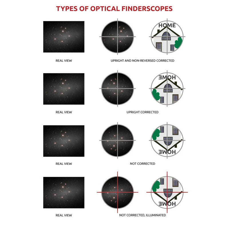 This finder scope has a 50mm aperture, and so provides a particularly bright image. Objects which you are not even able to see using just the naked eye will usually become directly visible. Also, if you are trying to locate one of the brighter DSOs, this will no longer be able to remain hidden, giving itself up to your searching eye.