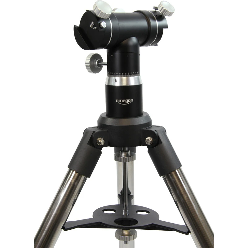 A stainless steel tripod with three 45mm legs provides a stable base. Even with telescope loads of up to 10kg, the whole mount remains completely vibration-free. A built-in metal spreader plate means even better stabilization and is very practical, also serving as a repository for 1.25″ and 2″ eyepieces.