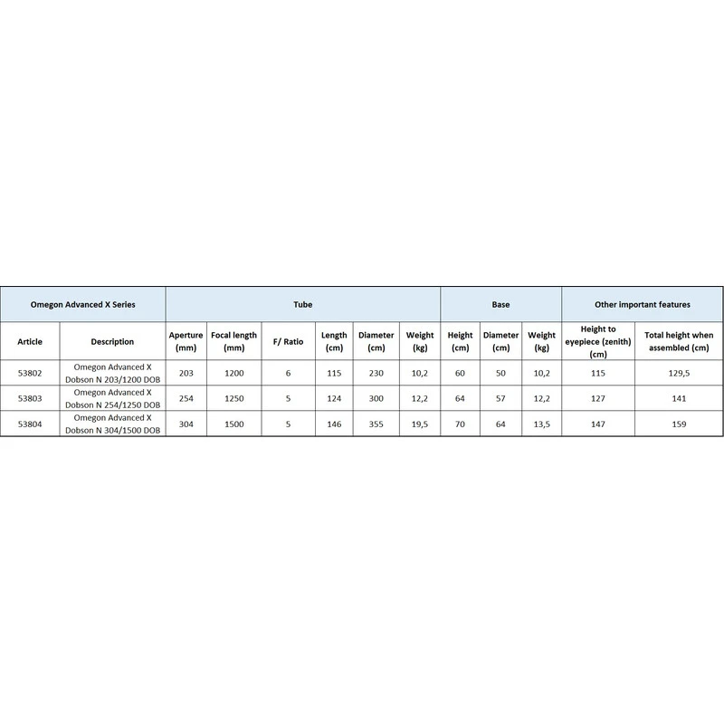 The Omegon Advanced X Dobsonian – this is a ‘fast’ telescope with which you can comfortably observe planets, star clusters, nebulae and galaxies. It is finished to a high-quality, consists of only two sections and is very easy to use. Even if you are a beginner you will have no problems operating it, as it is not neceassry to align the axes. It works on a simple principle – set it up and start observing immediately. But there is even more to it.