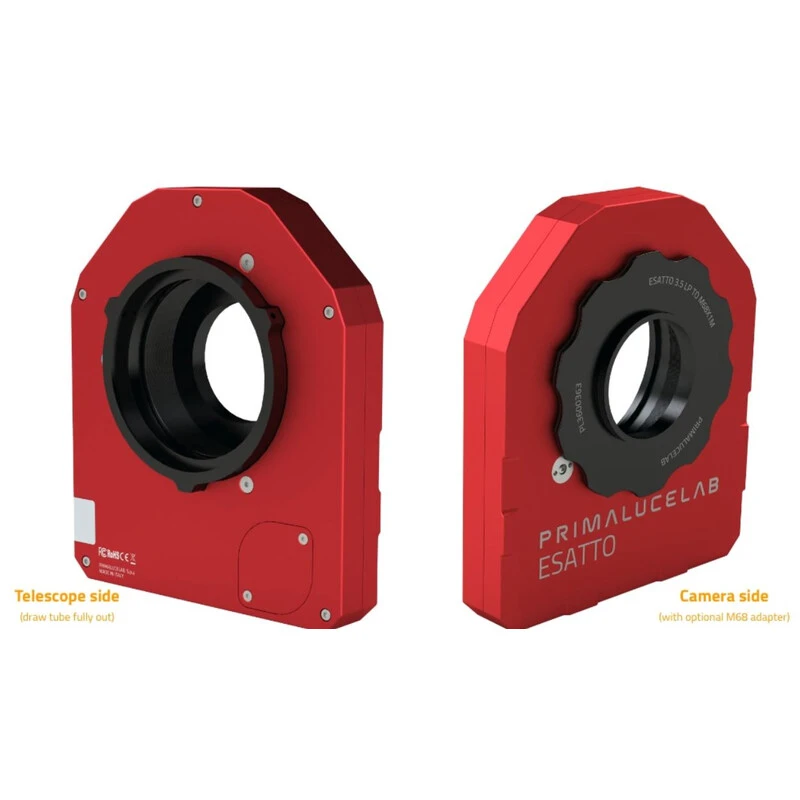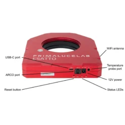 ESATTO 3,5” LP is the most advanced yet affordable low profile robotic focuser specially designed for the most demanding astrophotography! At just 32mm of thickness, ESATTO 3,5” LP provides a large 90mm free aperture with 10mm of travel, impressive 10 kg of payload capacity and an astounding resolution of 0.01 microns per step! ESATTO 3,5” LP has been designed for telescopes with little available backfocus, requiring a low profile focuser – Great for astrographs! And like all the other ESATTO focusers, it comes with a USB-C port to let control it from your EAGLE or any Windows computer, ARCO port to let you connect to ARCO rotator, temperature probe port, WiFi connection to let you wirelessly control with a smartphone or tablet and dimmable LED lights!