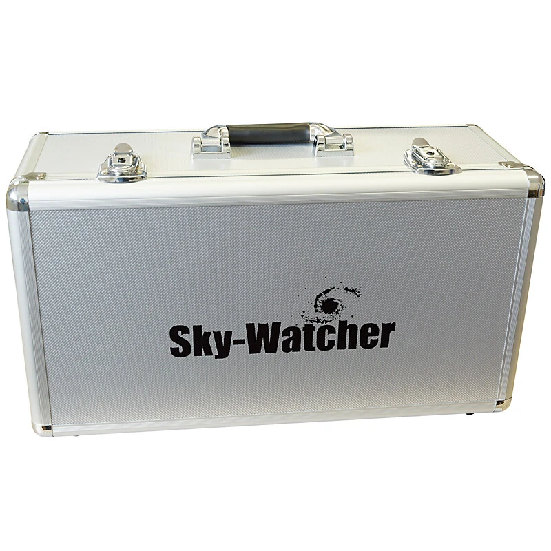 Evolux telescopes are shipped in a foam-lined aluminium case and come with a 2.4” dual-speed rack and pinion focuser and a tube bracket with Vixen-style prism rails. The dew cap can be retracted for easier transportation.