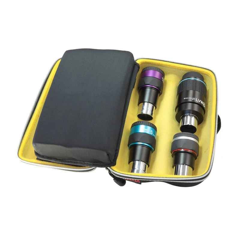 There is plenty of space for four eyepieces in this rugged, padded bag. The bag has a carrying handle and weighs just 330 grams, and thanks to the hard shell it is really stable.
