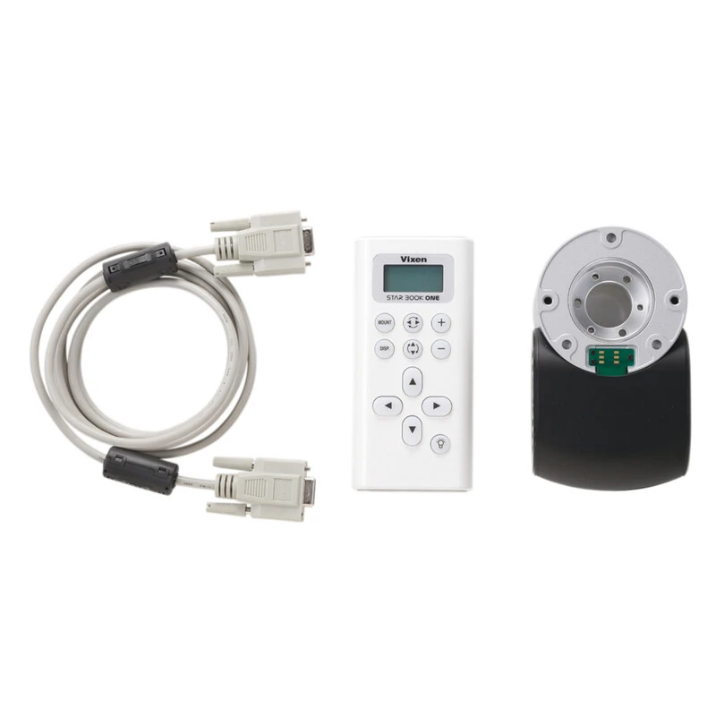 The Star Book One control is intended for, among others, the Vixen Advanced Polaris and SX2 mounts, and is an integral part of the Advanced Polaris R.A. motor module. Please note: if the Advanced Polaris mount is also to be motorised on the declination axis, then the declination motor module is additionally required. In contrast, all motors are already already installed in the SX2 mount.